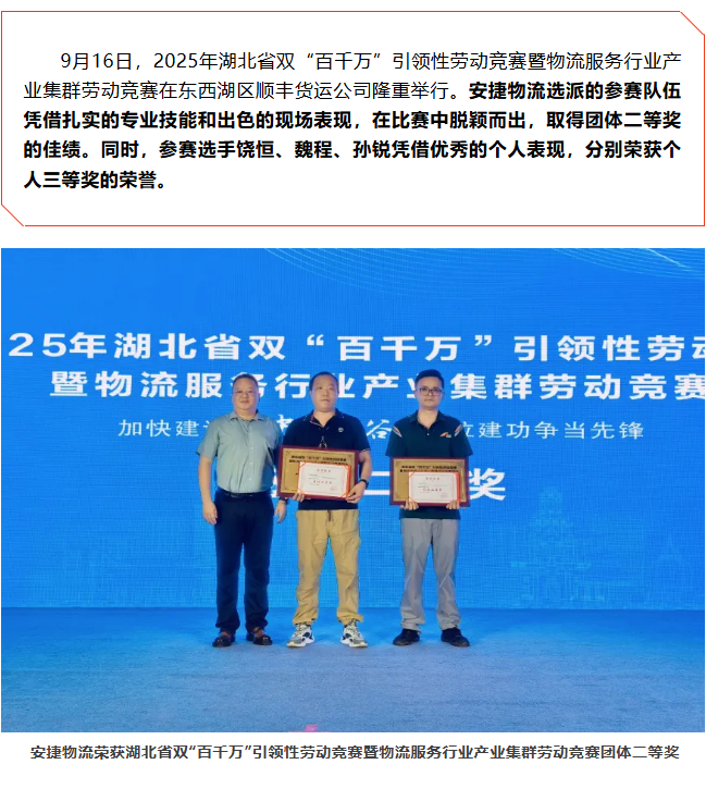 荣誉时刻:安捷物流在湖北省双“百千万”引领性劳动竞赛中斩获优异成绩